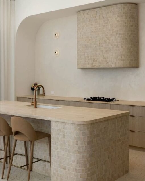 KlantenserviceHazel Travertin mozaïek combineert de warme, natuurlijke kleurnuances van travertin met een verfijnd handgesneden uitstraling. De zachte beige tinten en karaktervolle structuren geven elke ruimte een tijdloze, rustige en elegante basis. Lees meer
