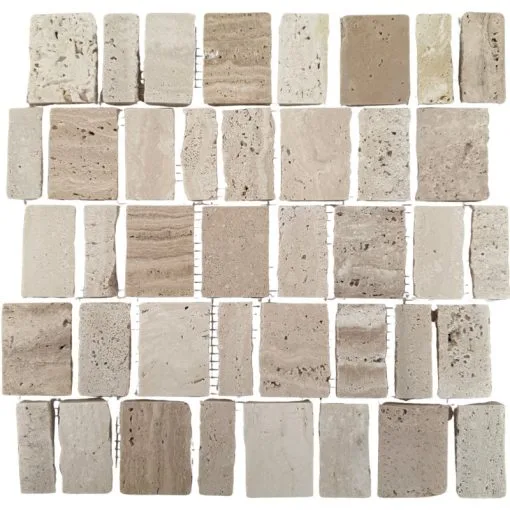 Deze Hazel Travertin tegel bestaat uit rijk geaderde travertinstukken die samen een warm en authentiek mozaïek vormen. De natuurlijke kleurschakeringen en subtiele textuur van deze travertin tegels zorgen voor een serene, mediterrane sfeer. Ideaal voor badkamer, keuken, hal of woonkamer en perfect voor wie een pure, tijdloze uitstraling zoekt. Dit product wordt geleverd op matjes van 31x28 cm.