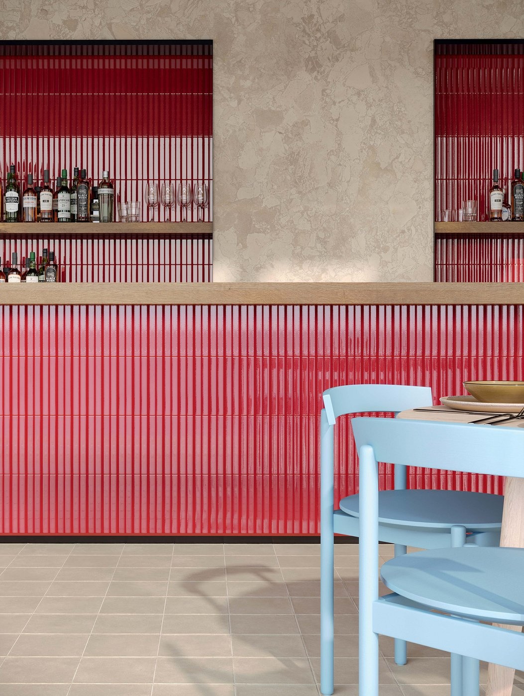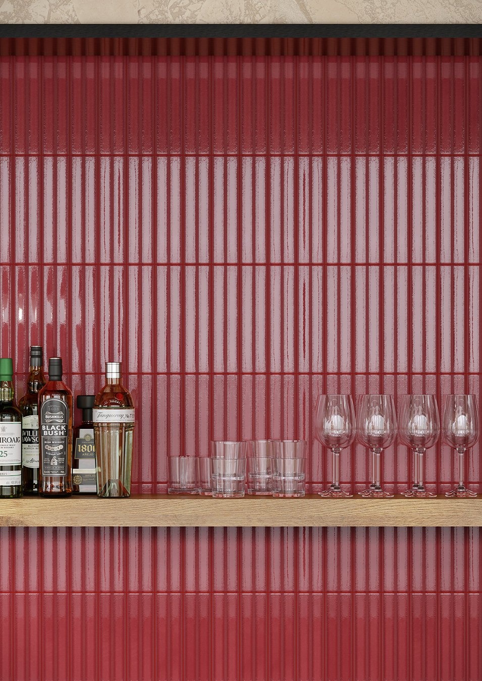 De rode kleur van de Marca Corona Miniature Rima Amanita 6x24 cm K057 gecombineerd met het reliëf zorgt voor krachtige contrasten en levendige lichtreflecties. Ideaal voor accentwanden, hospitalityprojecten en interieurs waarin u echt karakter wilt toevoegen.