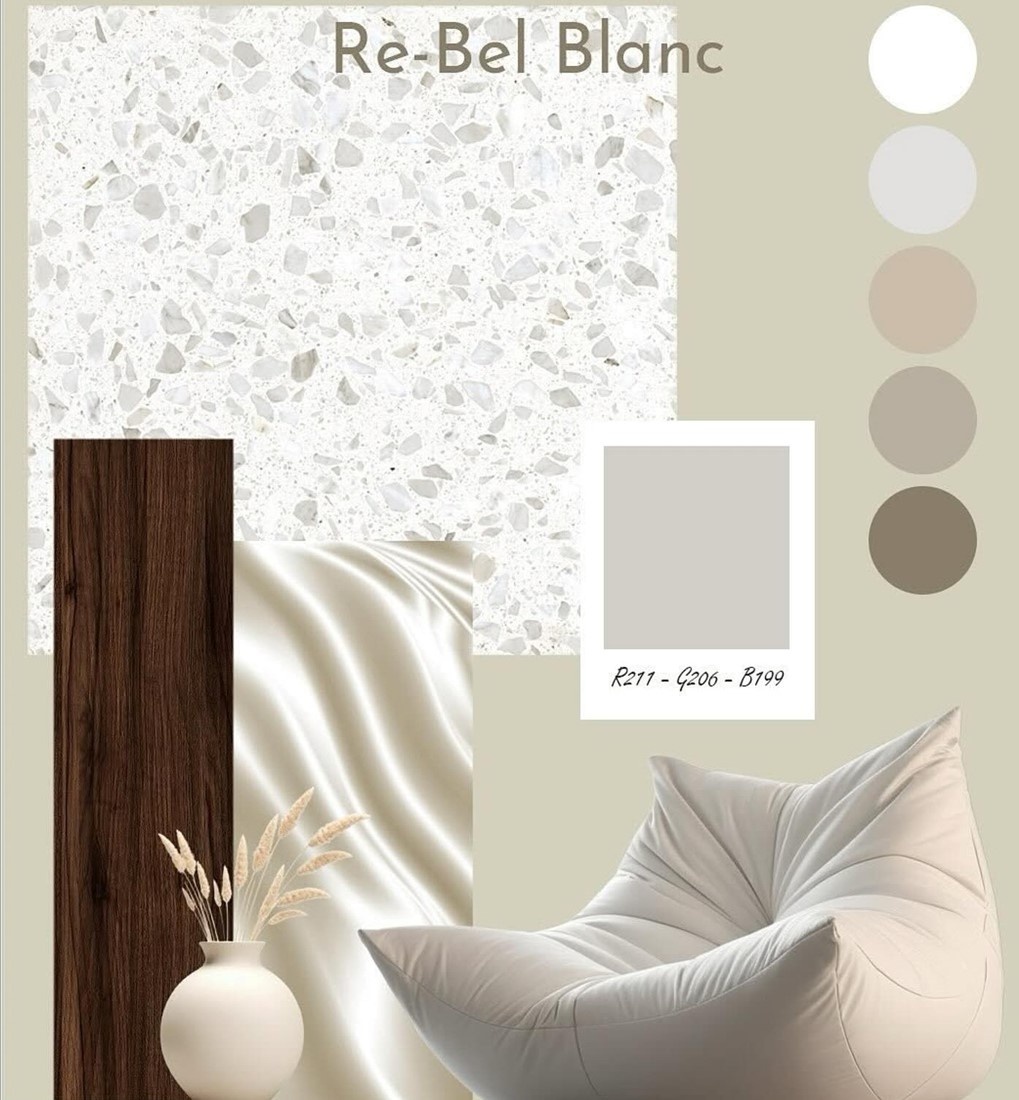 De Revoir Paris Re-Bel Blanc 60x60 cm combineert de charme van traditioneel terrazzo met de voordelen van keramiek. De zachte, lichte basis met speelse steensnippers zorgt voor een elegante uitstraling. Deze terrazzo tegel is duurzaam, onderhoudsvriendelijk en veelzijdig toepasbaar in elke ruimte.