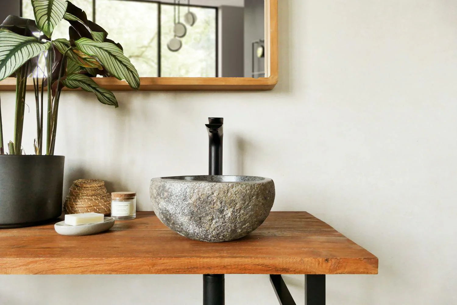De Rivierstenen Waskom Normann Grijs 30×27×15 cm combineert robuuste elegantie met functionaliteit. Elke exemplaar is handgesneden, waardoor vorm, kleur en structuur licht verschillen. De buitenzijde van deze rivierstenen waskom behoudt een natuurlijke, ruwere afwerking, terwijl de binnenzijde glad gepolijst is voor dagelijks gebruik. Ideaal voor opbouwmontage. Gratis verzending inbegrepen.