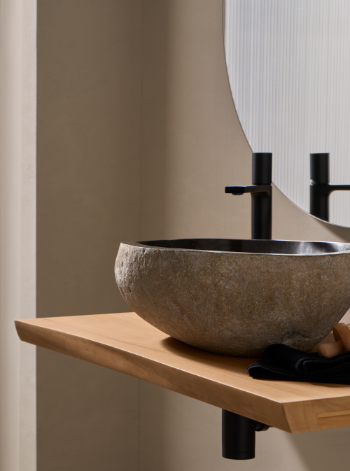 De Rivierstenen Waskom Riviera Grijs combineert natuurlijke charme met tijdloze elegantie. Met zijn unieke vorm en robuuste uitstraling brengt deze grijze natuurstenen waskom een luxe, organische sfeer in iedere badkamer of toilet. Lees meer