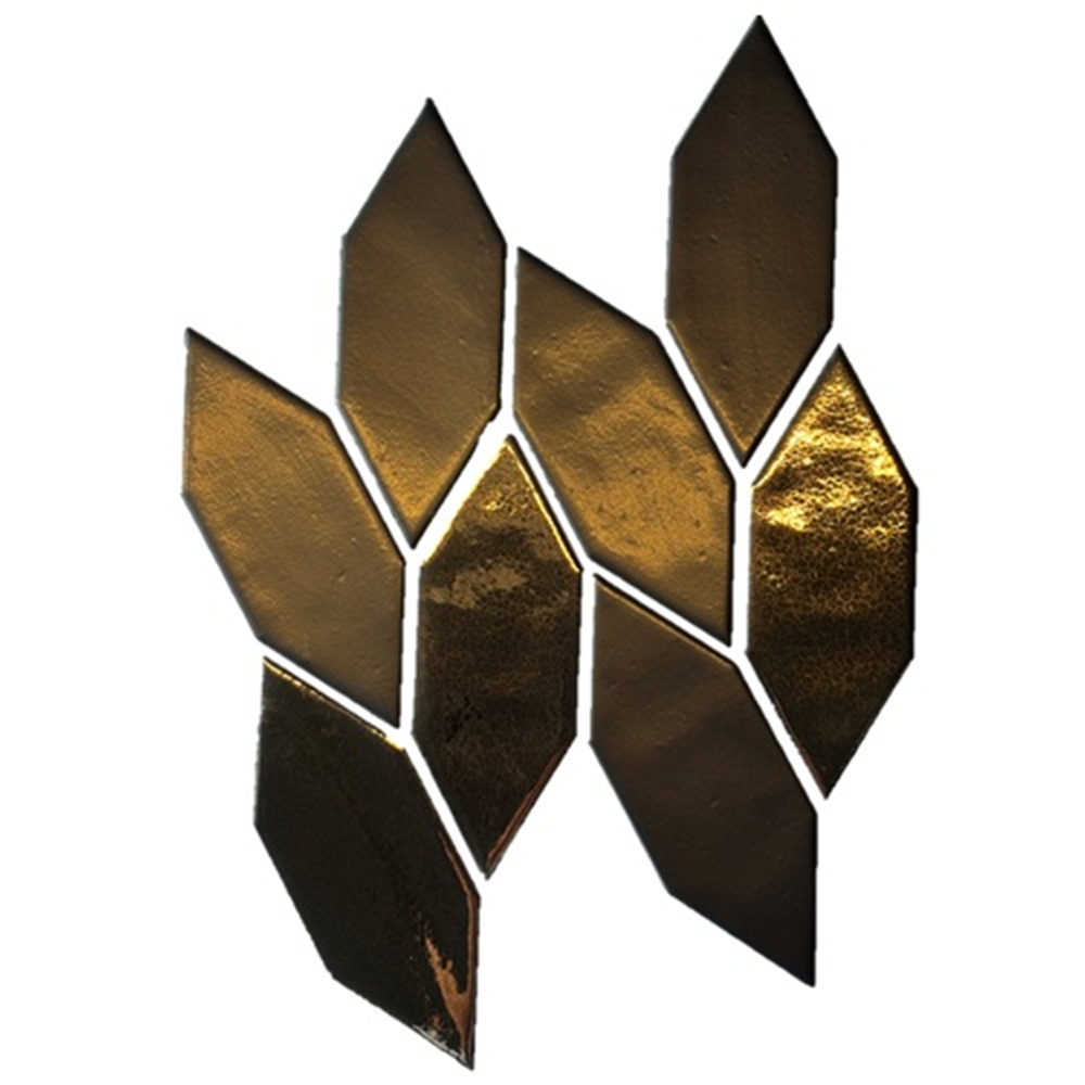 De Terre d’Azur Barco Mosaic F68 23,7x31,5 cm is een luxe mozaïek in een warme metallic tint. De unieke diamantvormige stukken en de glanzende afwerking geven elke wand een exclusieve, moderne uitstraling. Lees meer
