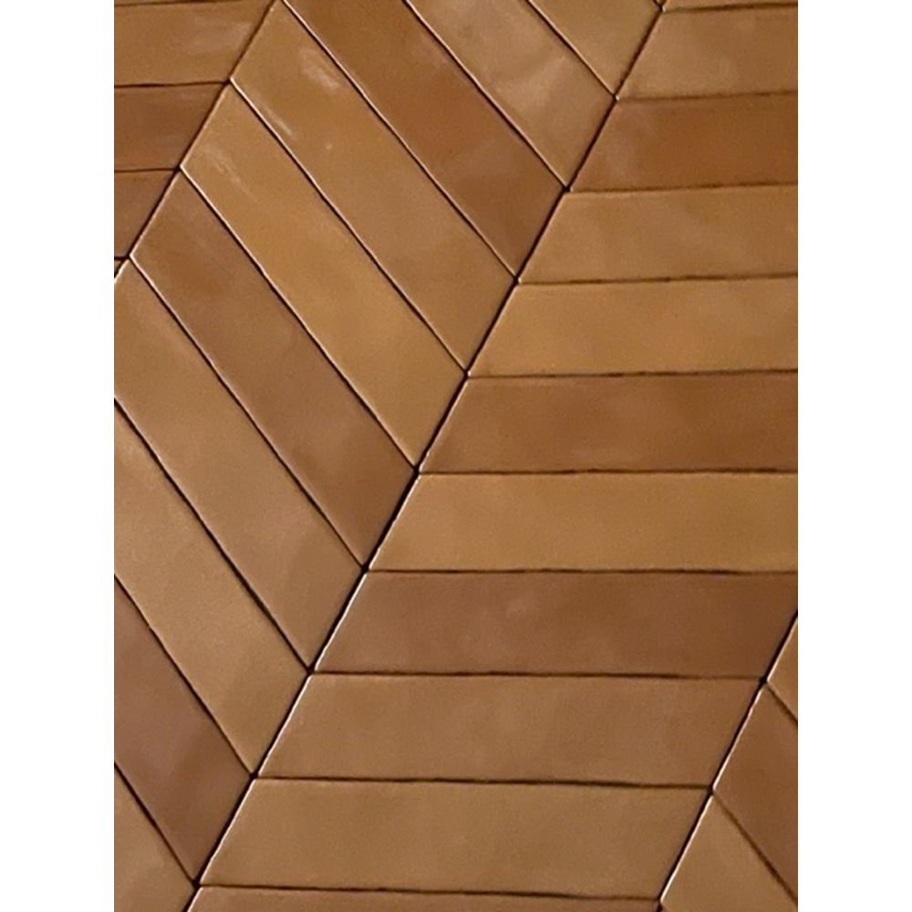 De Terre d’Azur Granada Miel-L 6,4x27,5 cm is een handvorm chevron wandtegel in een warme honingkleur. Deze linkertegel vormt samen met de rechtervariant een elegant visgraat- of zigzagpatroon. Lees meer