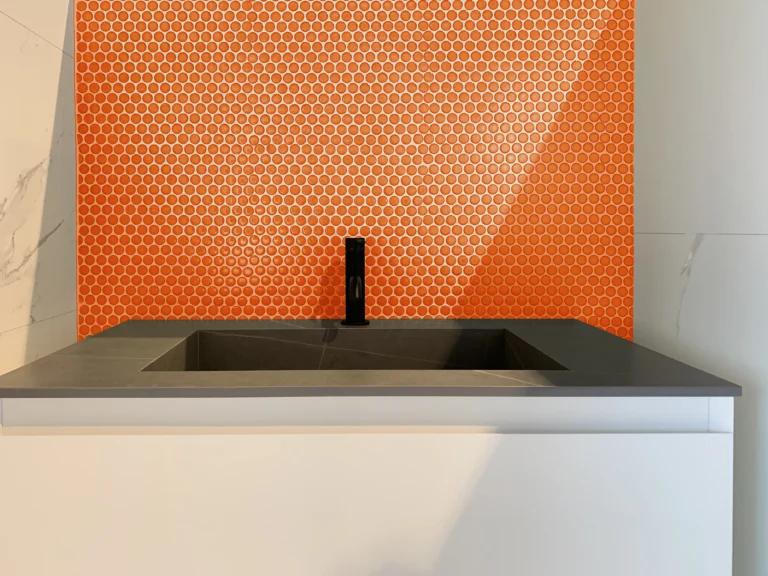 The Mosaic Factory Venice Pennyround Orange is een opvallend mozaïek met speelse ronde vormen in een levendige oranje tint. De glanzende toplaag geeft dit wandmozaïek een stralende uitstraling, perfect om warmte en energie toe te voegen aan uw interieur. Ideaal voor gebruik in badkamers, keukens of als accentwand, brengt dit oranje mozaïek een uniek en eigentijds karakter in elke ruimte.