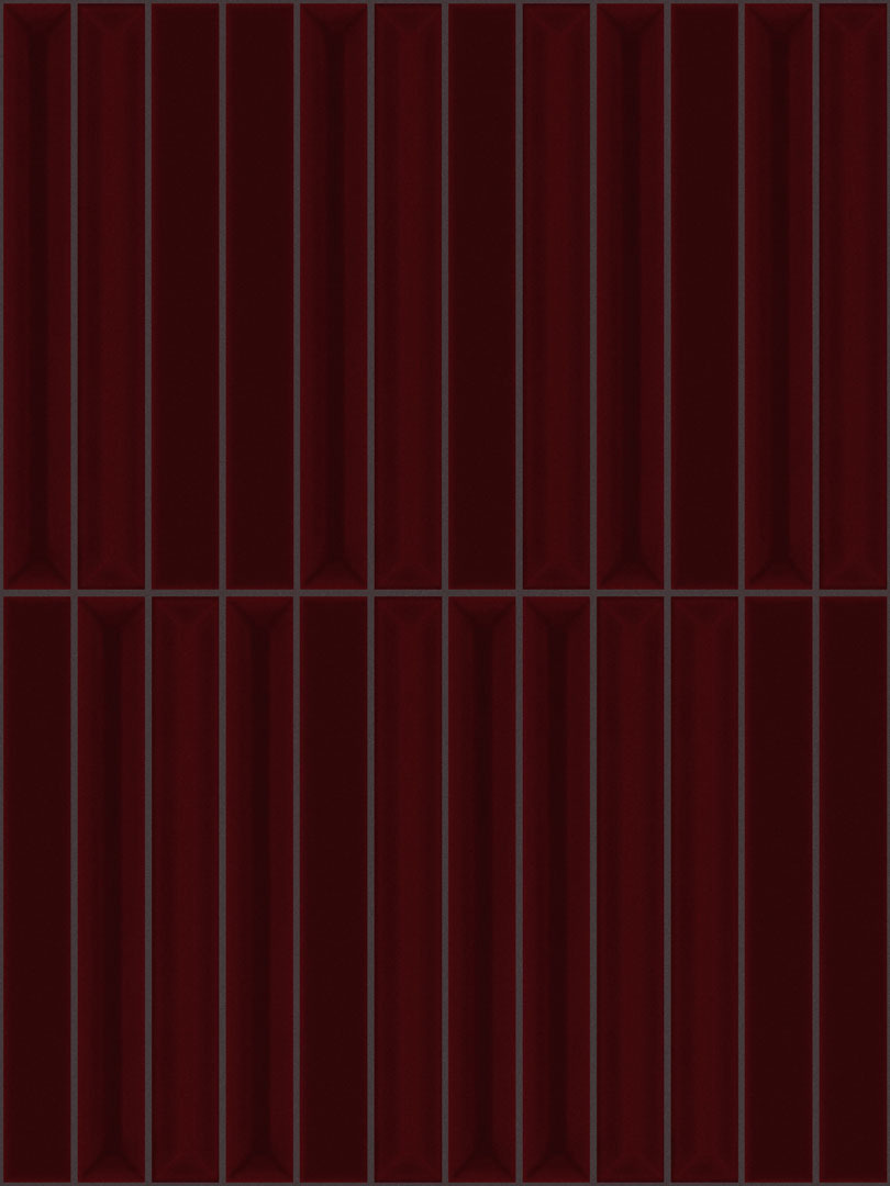 De Vogue Flautini Vino tegels worden geleverd op matten van 40x30 cm voor een strak eindresultaat. Het verticale patroon versterkt de diepte van de kleur en zorgt voor levendige reflecties. Perfect voor accentwanden in retail, horeca en karaktervolle woonruimtes.