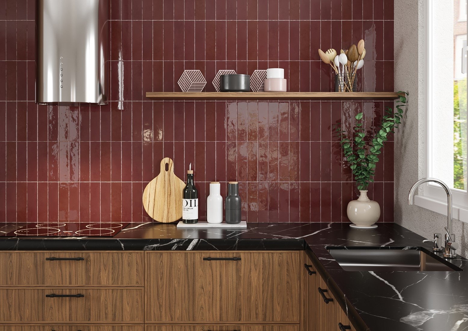De Wandtegel Maris Spiced Red Glossy 6,2x25 cm is een keramische wandtegel met een Bordeaux-rode kleur. Een mooie tegel die geschikt is voor de wand van de badkamer of keuken. Lees meer