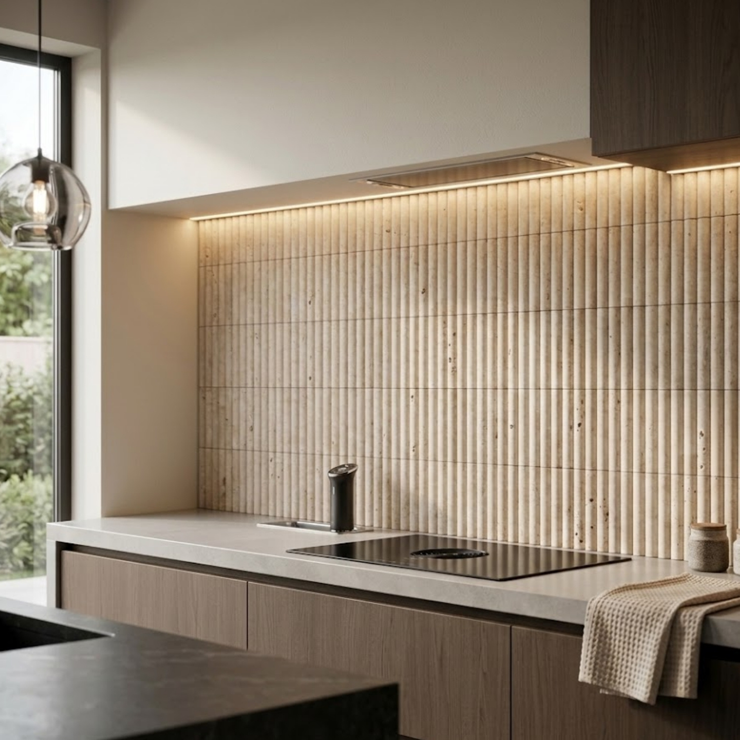 De Workshop KitKat Travertin Light Honed Round 2,5x15 cm wordt geleverd op flexibele matjes, waardoor het eenvoudig te plaatsen is – ook op ronde of creatieve oppervlakken. Ideaal voor het bekleden van een bar, zuil of andere organische vorm. Zo creëer je zonder moeite een stijlvolle en strakke afwerking, zelfs op lastige ondergronden. Lees ook eens ons blog over het betegelen van een bar.