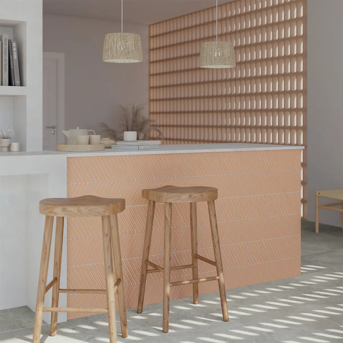 KlantenserviceDe WOW Spike Bars Earth 15x25,9 cm tegel is een stijlvolle wandtegel in een warme, terracotta kleur en heeft een kitkat-ontwerp. De tegel is voorzien van een diagonale structuur met lange, smalle secties die een dynamisch en modern effect creëren. Lees meer